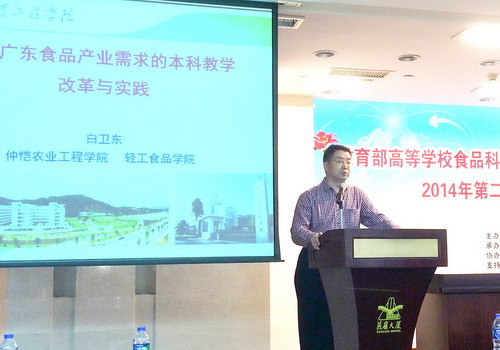 教学研讨会上,我校白卫东教授在会上做《面向广东食品产业需求的本科教学改革与实践》专题报告,详细介绍了我校食品专业本科教学的人才培养方案,教学改革内容及成果,得到参会代表的高度认可和一致好评。来自我国二十个高等院校的专家学者分别就食品专业创新人才培养体系、地方院校学科特色探索、本科生导师制构建与实践、教学游戏开发、校企共建等问题进行分享与探究。