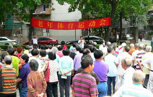 老年运动会以体现趣味、娱乐、参与为主题,共设抛圆圈、足球射门、投篮、滚球撞物、抛沙包、打门球、掷飞镖等7个室外项目以及乒乓球、桌球、麻将等三个室内项目。