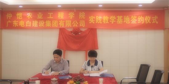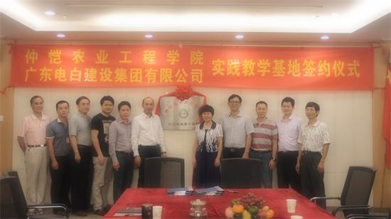 10月20日下午,仲恺农业工程学院与广东电白建设集团有限公司实践教学基地签约仪式在广州市天河区华港商务大厦广东电白建设集团有限公司总部举行。我校副校长向梅梅、教务处副处长吕建根、城市建设学院党总支书记韦松林、院长卓献荣、副院长吴全科和广东电白集团有限公司董事长陈庆良、董事总经理崔德锦、总工程师黄思远等出席揭牌仪式。仪式由广东电白建设集团有限公司总工程师黄思远主持。