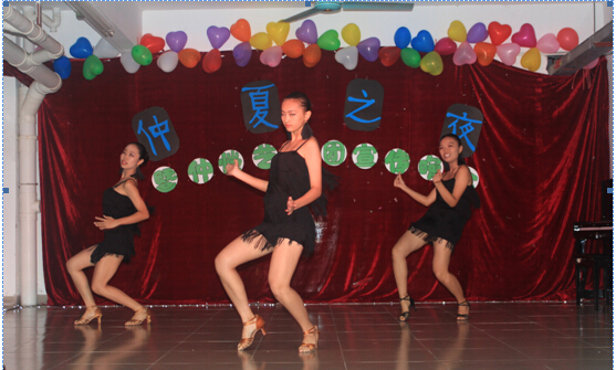 蒙蒙细雨似针敲落,晚会在雨声中拉开了序幕。主持人闪亮登场后,舞蹈队的《阿拉伯之夜》带来了第一个高潮,婀娜多姿的身材、轻盈跳跃的舞步、顾盼生辉的笑容赢得了现场观众的阵阵欢呼。接着,器乐队为大家献上一场听觉盛宴《沉静之水》,歌曲温柔灵动,时而像水里悠闲尾动的鱼儿,时而似活泼嬉戏林间的鸟儿。国标舞队性感热辣的《Passion Latin》国际范十足,更是将全场气氛推向高潮,舞蹈演员随着音乐的节拍,利用身体的律动表达对新生到来的热情欢迎。随着音乐节奏的突变,舞蹈演员由三个女生的辣舞变成男女之间的国标舞,舞蹈队员们通过眼神交流和表情的互动,让整支舞蹈添上了一份自信。