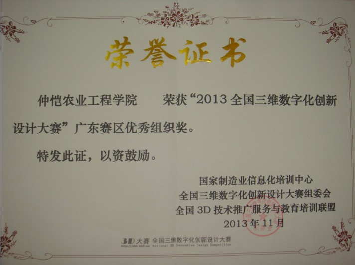 全国三维数字化创新设计大赛由科技部国家制造业信息化培训中心、教育部高教司指导,国家制造业信息化培训中心3D办和常州市政府共同主办。自2008年发起举办以来,大赛已连续成功举办了6届,越来越受到各地方、高校和企业的重视。我校机电工程学院连续四年参加此项比赛,今年的参赛人数和所获奖项与往年相比均有明显提高。