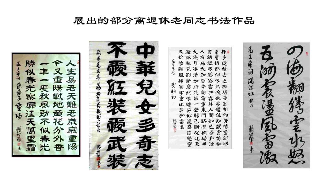 12月9日,离退休双清诗书画社在老干部活动中心举办纪念毛泽东同志诞辰120周年书法展览,展出的作品主要是我校退休教师赖世荣书写的以毛泽东诗词为主要内容的三十多幅书法作品。此次展览将持续到本学期末。