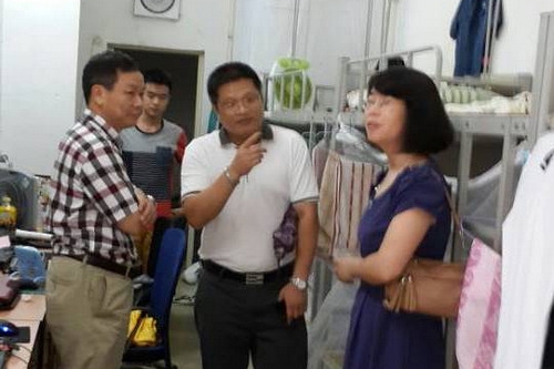 易洪陶副校长到海珠校区北区一楼饭堂就餐前,带领总务处、保卫处负责人深入学生宿舍了解后勤保障存在的问题,并与随行人员商讨解决的办法。