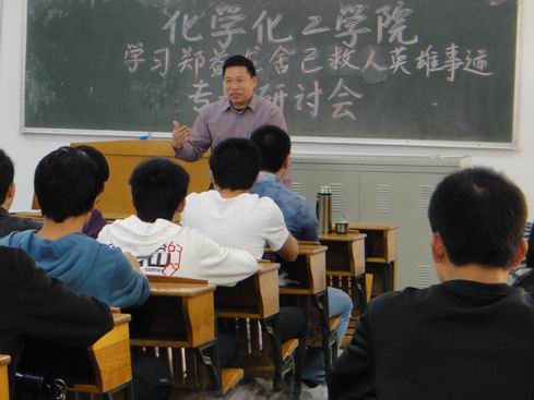 3月7日中午,化学化工学院在教学楼309召开学习广州武警郑益龙舍己救人先进事迹专题讨论会,该院党总支副书记邱树华、辅导员及海珠校区全体学生党员(含预备党员)参加了专题讨论会。