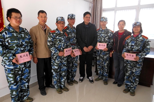 陈主任介绍,生物科学系有很多家庭贫困的学生,已申请国家助学金和学校补助的学生就达30%以上。今年,在该系肖德兴教授的倡议下,全系15名教师将学校发放的生日费捐献出来,用于资助6名未获学校各类资助的贫困学生。宾淑英书记和刘伟坚副书记向获资助的同学们发放了慰问金,并希望这些同学能够继续努力、克服困难、积极乐观、勤奋学习,不辜负全体老师的期望。