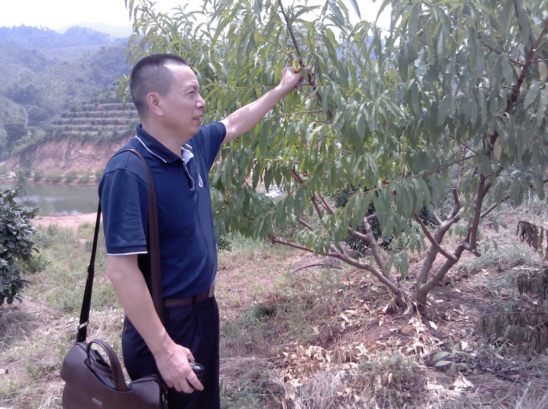 8月21日,受韶关市明弘农业生态有限公司委托,我校挂职韶关市浈江区团委副书记王浩邀请我校研究生处副处长柳建良教授到该公司指导桃树种植管理生产。