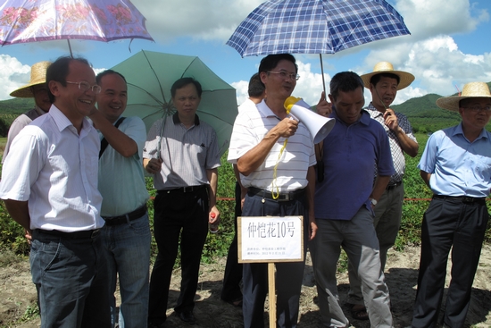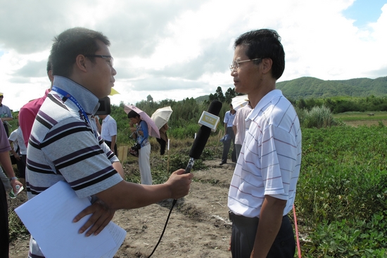 7月2日,农学院郑亦雄教授培育的花生新品种仲恺花1号、10号、12号和99号在阳江市举办的“第十一届广东种业博览会花生新品种展示现场会”上展示,展示会由广东省农作物技术推广总站主办。参加展示会的有全省各级农业技术推广部门、农科研究院所及农业院校,我校是唯一送展花生新品种的高校。郑教授在会上对各新品种作了详细介绍并接受了当地电视台记者的采访。
