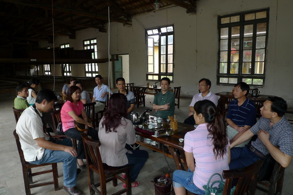 考察组由该院党总书记李一文、院长白卫东带队,英德市食品药品监督局副局长李奕业陪同。李书记一行受到公司总经理罗惠燕的热情接待,罗经理介绍了公司目前的发展情况和未来规划,该公司现主要是生产英红茶,经过努力在原有的基础上新出产品——英红九号,推向市场后反应不错,但由于缺乏技术,该产品也发现一些问题。公司现获批得5500亩山地,下一步将建设相当规模的茶文化生态园,另外公司还准备发展当地的特色产业,投资生产腐竹,在一系列规划发展中,罗总经理提出需要先进的技术支持。白卫东院向她介绍了轻工食品学院在食品方面的技术优势,双方很快达成系列合作协议,成立清远市英德红茶研发中心。研发中心首要解决的是红茶中菌类研究与调控,以增长保质期,其次是检测新出红茶中的各种元素含量。双方商议在该公司建立仲恺农业工程学院轻工食品学院学生习实基地,最近将挂牌。双方还就产品的包装问题进行了讨论,为发挥我校这方面的专业功能,由公司出资,下学年在仲恺举办全校性的茶叶包装设计大赛,暨时获奖作品将提供给公司。