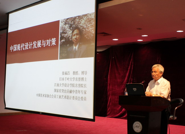 张福昌教授从设计学科发展的思考与建议、当代世界设计与商品的新特点及工业设计的发展趋势等方面进行解说,并对当代大学生应具备的素质提出要求。张教授提出“作为一个中国的设计者,学好外语是使中国设计得以站在世界前沿的途径”,并提出“光有学位是不行的,最重要的是能解决实际问题”。