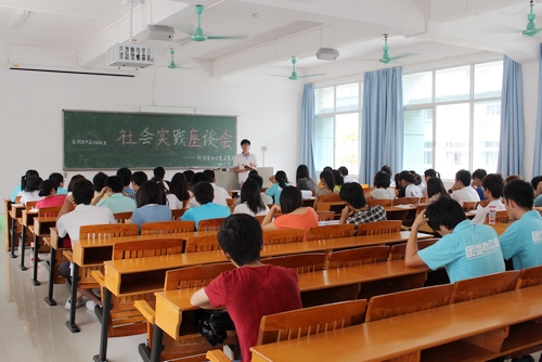 本次座谈会主要讨论了“如何结合今年社会实践主题(珠三角规划建兴纲要、关爱留守儿童、农村青年致富带头人),在社会实践工作中形成我校特色”、“如何创新我校社会实践活动形式,提高工作成效”以及“如何把我校的社会实践提高档次”三个议题。