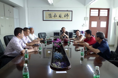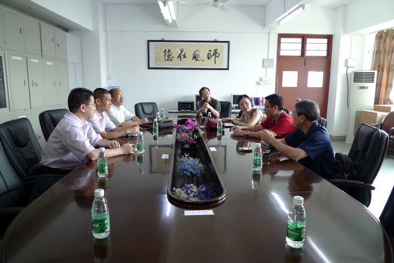 5月22日上午,华南农业大学食品学院孙远明院长、李国章书记和黄苇教授一行到轻工食品学院交流。轻工食品学院党政领导热情接待他们。