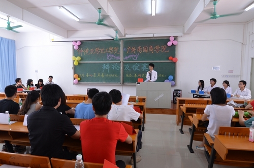 5月20日下午,我校化学化工学院与广外南国商学院友谊辩论赛在杨钊杨勋楼举行