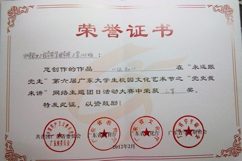 由团省委、省教育厅、省文化厅、省学联共同主办的“永远跟党走”第六届广东大学生校园文化艺术节之“党史我来讲”网络主题团日活动大赛中,我校管理学院学子表现突出,硕果累累。其中工商管理专业102团支部创作的作品《纽扣》荣获三等奖,人力资源管理专业092团支部创作的《党伴我成长》和工商管理专业103团支部创作的《听爷爷讲故事》获得优秀奖。