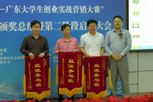 近日,“启航杯—广东大学生创业实战营销大赛” 第一阶段创业颁奖总结暨第二阶段启动大会在中山大学隆重举行,学生处副处长李伟东及团委老师参加了此次大会。我校组织学生积极参与,共有79支团队参加了比赛。比赛期间,我校学子表现突出,其中扬帆团队在第一阶段比赛中获得了铜奖,同时,学校荣获“最佳参与奖”。