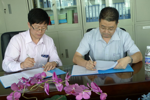 10月19日下午,我校轻工食品学院在办公大楼604室举行“仲恺—标际包装设备有限公司联合实验室签约暨挂牌仪式”。 轻工食品学院院长白卫东和广州标际包装设备有限公司总经理周学惠代表双方在协议上签名,并一起到科学楼五楼挂牌。仪式由轻工食品学院党总支书记李一文主持。
