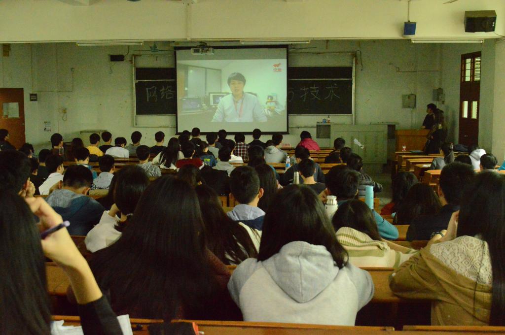 讲座由天融信公司的黑客攻防技术工程师钟强先生主讲。他从网络信息的组成、黑客的分类、公司网络方面的工作岗位、网络产品从研发到测试到销售的完整过程等几大类进行详细的讲解。
