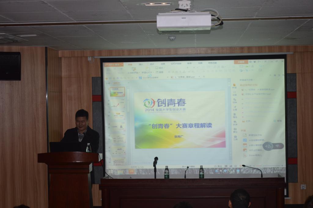 会上,张育广书记以深入浅出的方式,从“创青春”评审的视角为大家作了“创青春”赛事章程和评审规则的精彩解读,并结合自己多年的赛事指导经验,通过实际的典型案例系统归纳了往届获奖项目的共性特点,为大家提供了具体思路。他指出,创业计划书的撰写尤为重要,必须内容完整,具有合理性和可行性。在作品现场答辩环节,应注意陈述条理清晰,展示独特新颖,贴合主题,团队之间要配合默契。张书记建议,为更好的做好现场答辩的工作,参赛小组在课余时间要反复多做现场答辩模拟,才能够在比赛答辩时沉着冷静地应对。培训会上,还进行了现场答疑环节,张书记与我校指导老师和学生代表进行了深入的面对面交流指导。
