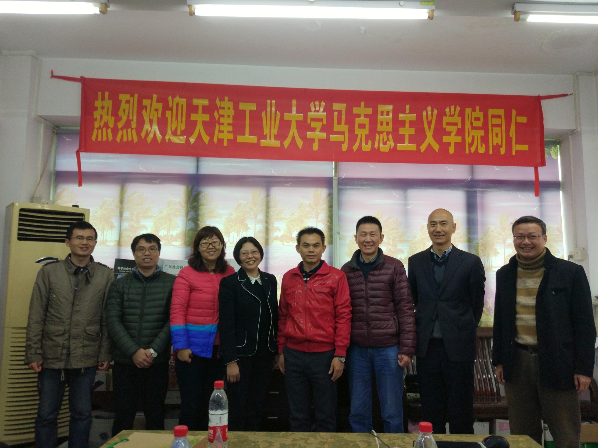 首先,蔡院长和黄燕教授相互介绍了出席本次活动的嘉宾,蔡院长代表我校马院对天津工业大学四位教授的来访表示热烈欢迎。紧接着,双方又相互介绍了各自学院的基本状况、教学工作以及科研工作的成绩与经验。我院教学副院长贺佃奎教授主要从改革考试方式、教师考核方式、实施情况及效果以及存在问题等方面对我校马院网络思政课教学改革情况进行了整体介绍。作为广东省易班教学改革的先导,我校马克思主义学院在网络教学方面取得了丰厚的成果,我校马院毛泽东思想和中国特色社会主义体系概论教研室主任秦抗抗副教授重点介绍了上学期我们的教学改革情况以及易班教学网络操作技术与经验。最后,出席本次交流活动的老师们针对网络教学带来的一些问题进行了更深层次的相互交流。交流完后,天津工业大学的黄教授称赞到我们学院的网络教学改革做得很“实”,对他们的教学改革有很大的借鉴意义。最后,我院党总支书记翁礼成教授作出总结,天下马院是一家,我们可以在交流过程中相互促进,相互发展。
