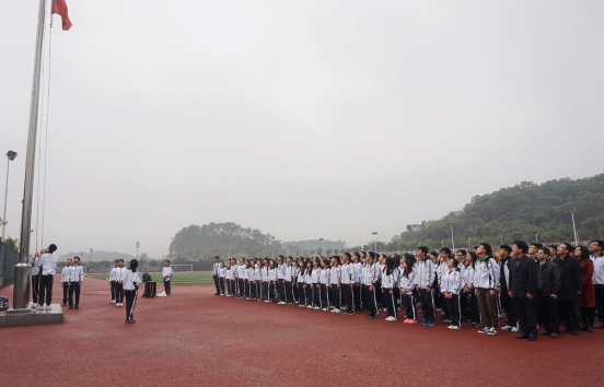 3月13日早上,经贸学院在白云校区足球场举行了2016-2017学年度第二学期第一次升旗仪式。学院党总支书记陈丹雄、党总支副书记邓勿出席仪式,辅导员赵栋、赵丽以及经贸学院16级全体学生参加了本次升旗仪式。