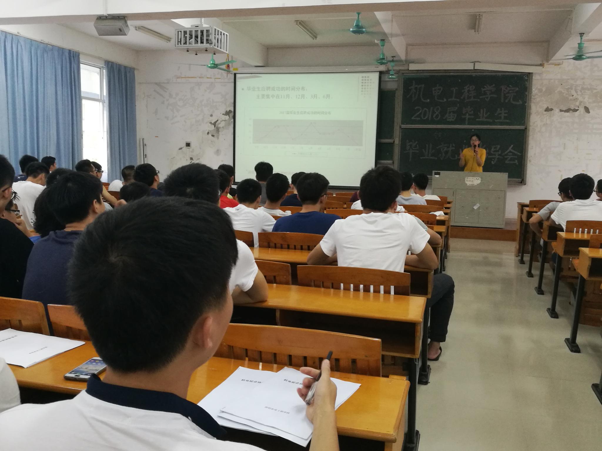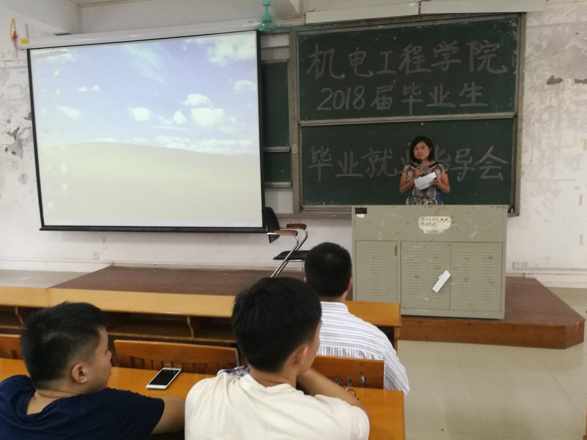 9月4日下午,机电工程学院在白云校区杨钊杨勋楼210室举行了2018届毕业生学业就业指导会。该院党总支副书记何宝国、教学副院长陈姝、辅导员尹彩霞及2014级全体学生参会。会议由尹彩霞主持。