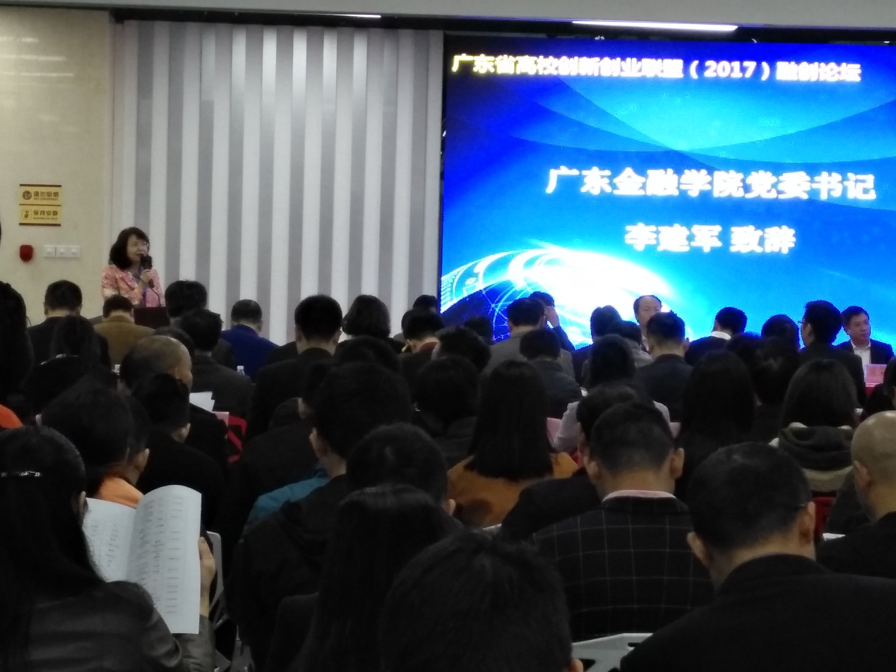 为贯彻落实党的第十九次全国代表大会报告中提出的“激发和保护企业家精神,鼓励更多社会主体投身创新创业”的新目标,作为培育大学生创业精神,激发创业意识的教育主体——高等院校,将不断探索创新创业教育模式,深入研究助力创新创业路径,进一步提升优化双创平台和环境,为高校学生创业者提供全方位引导与服务。11月24日,由广东省高校创新创业联盟与广东金融学院联合主办“广东省高校首届融创论坛(2017)暨广州市大学生创新创业融资服务中心揭牌仪式”在广东金融学院举行,我校创新创业教育学院黄江华院长等2人出席了会议。