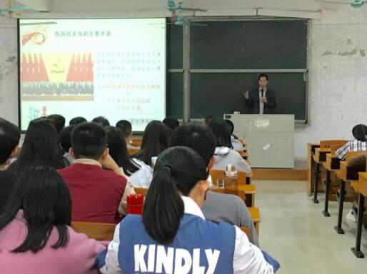 在讲课过程中刘书记提到新中国成立到现在党对社会主要矛盾变化的判断,人民需求变化是新时代社会主要矛盾的核心内容,新时代我国社会矛盾的基本内涵等内容;刘书记说我们要坚持深化改革,因为深化改革是解决社会主要矛盾的着力点,是提高民生建设质量的解决方法。刘书记引用了习主席的“世异则事异,事异则备变”,提醒我们要时刻准备着迎接接挑战,努力读书学好专业,争取为国家做贡献。