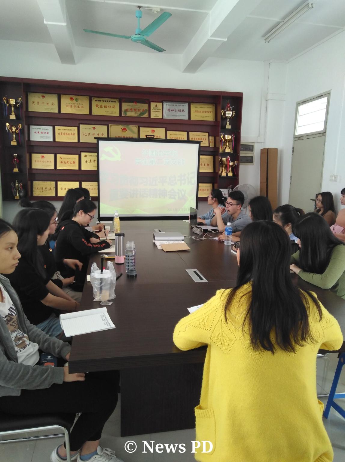 应仲恺农业工程学院党委宣传部的要求,外国语学院学生第二党支部开展学习宣传贯彻习近平总书记在参加十三届全国人大一次会议广东代表团审议时的重要讲话精神。本次会议分为两个环节,第一个环节是各党小组针对习近平总书记重要讲话精神进行讨论发言,第二个环节是各党小组进行总结发言。