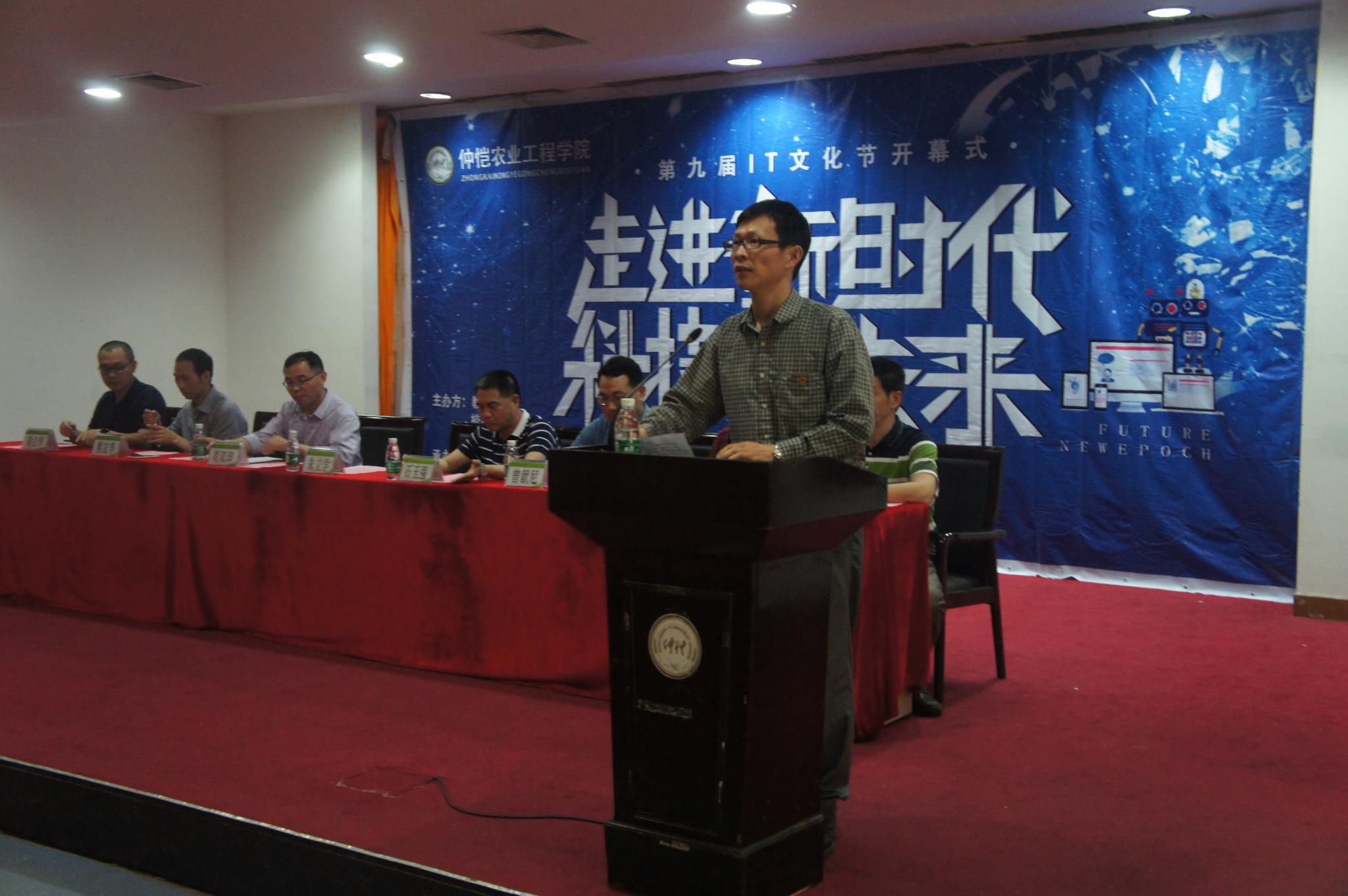 开幕式上,朱立学代表学校对第九届IT文化节的举办表示祝贺。他指出,学校IT文化节以“科技引领时代,创新改变生活”为主题,营造了创新文化氛围,用新的时代符号弘扬了我校“注重实验,扶助农工”办校理念,是学校文化建设的一个抓手。举办IT文化节,既是展现学生技能风采的大好机会,又是培育求知、团队精神的一个推手,可提升学生的创新兴趣,达到以赛促教、以赛促学的目的。