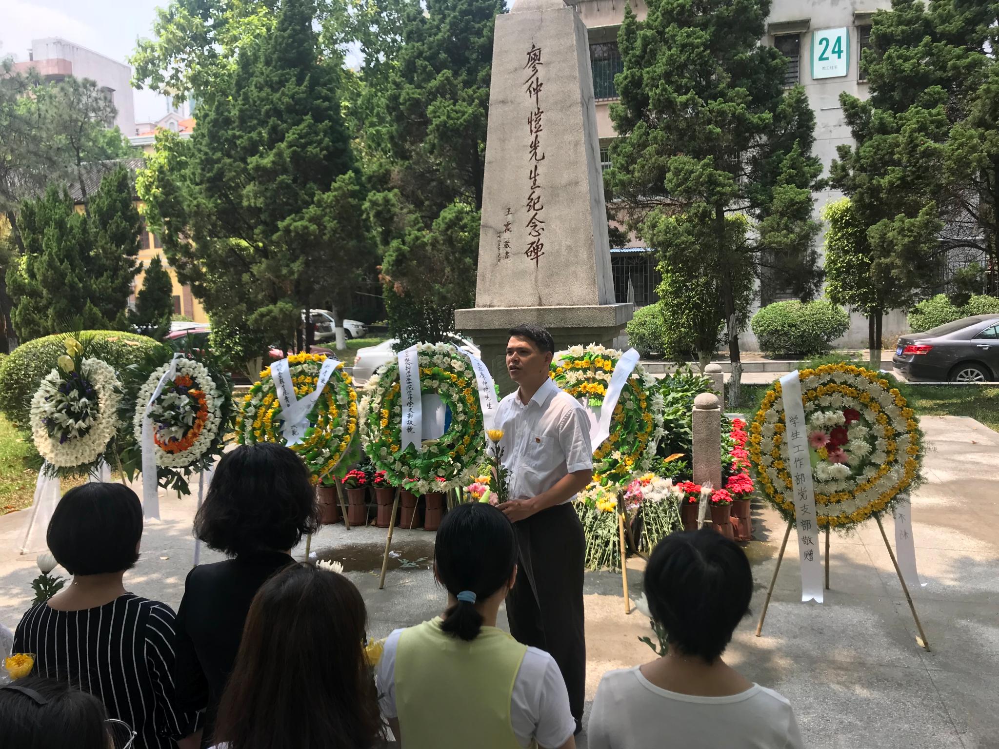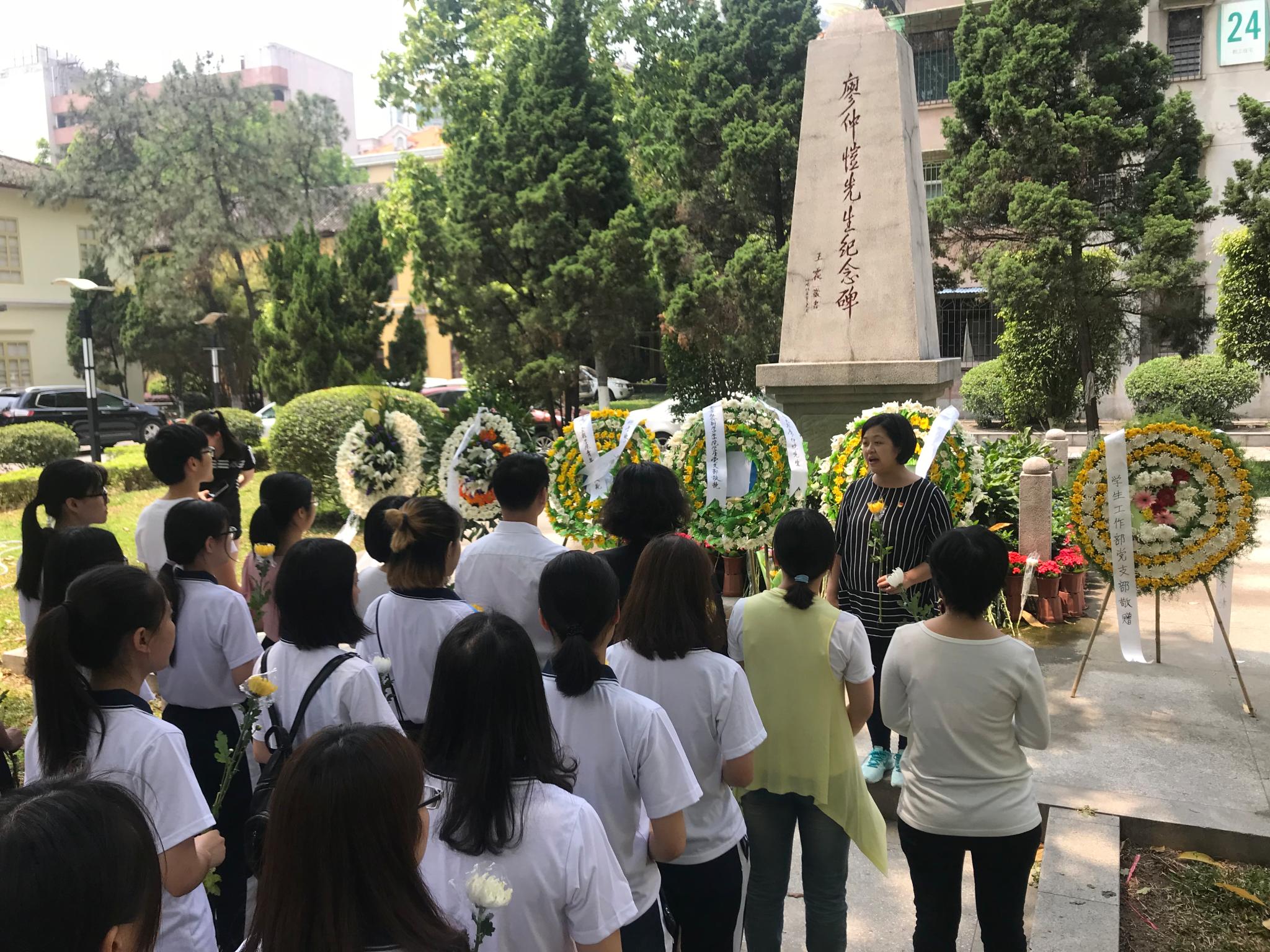 全体师生向廖仲恺先生纪念碑鞠躬默哀、敬献鲜花并绕行纪念碑一周。