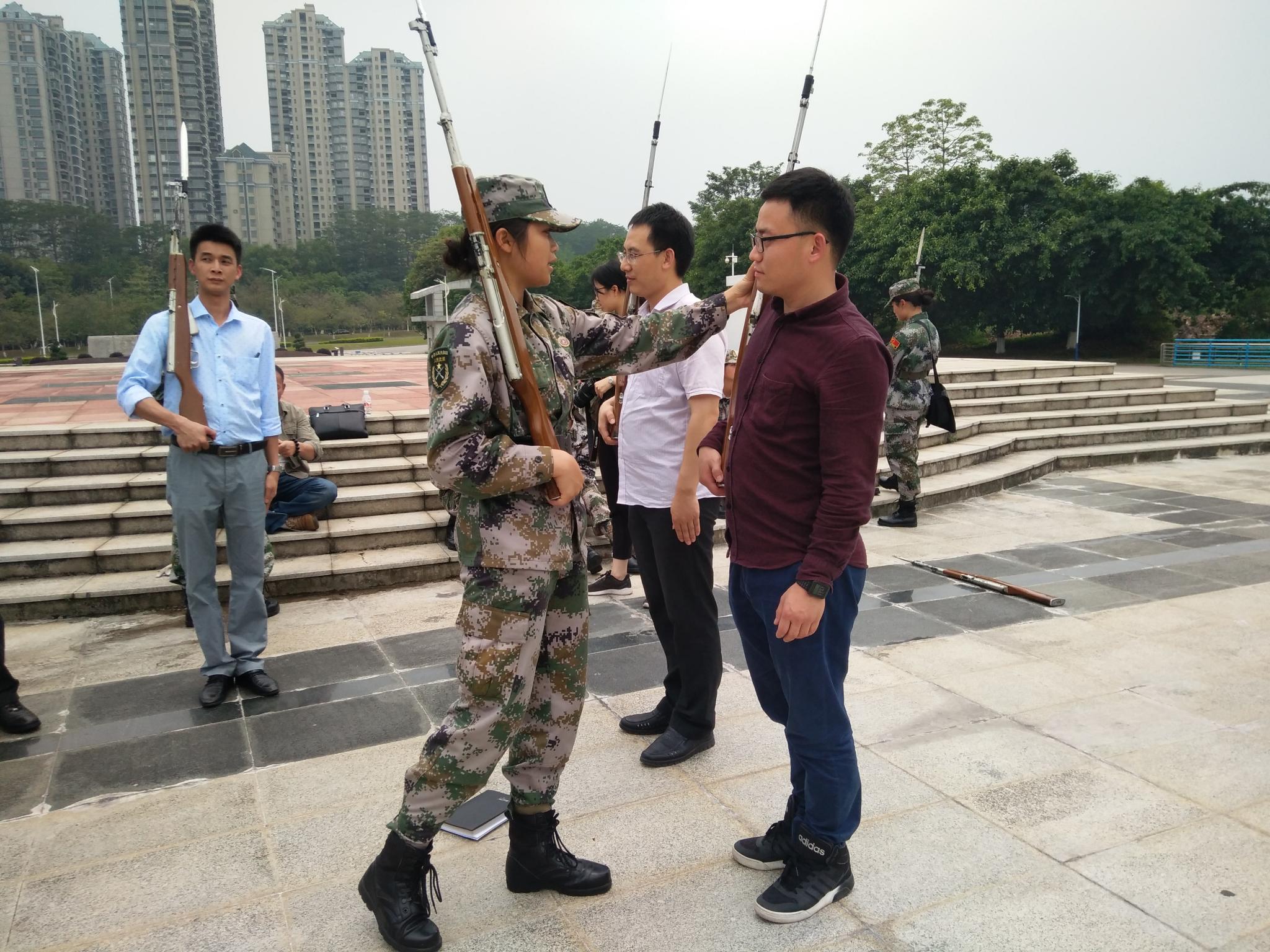 我校参加考察交流人员认真学习体验国旗护卫队训练动作规范