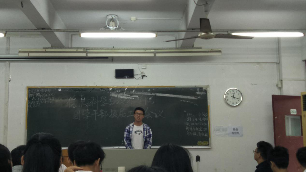 4月26日中午,信息科学与技术学院团学干部换任工作会议在教学楼303室召开,党总支副书记王浩及全体团学干部出席会议,会议由学院团委副书记吴南生主持。