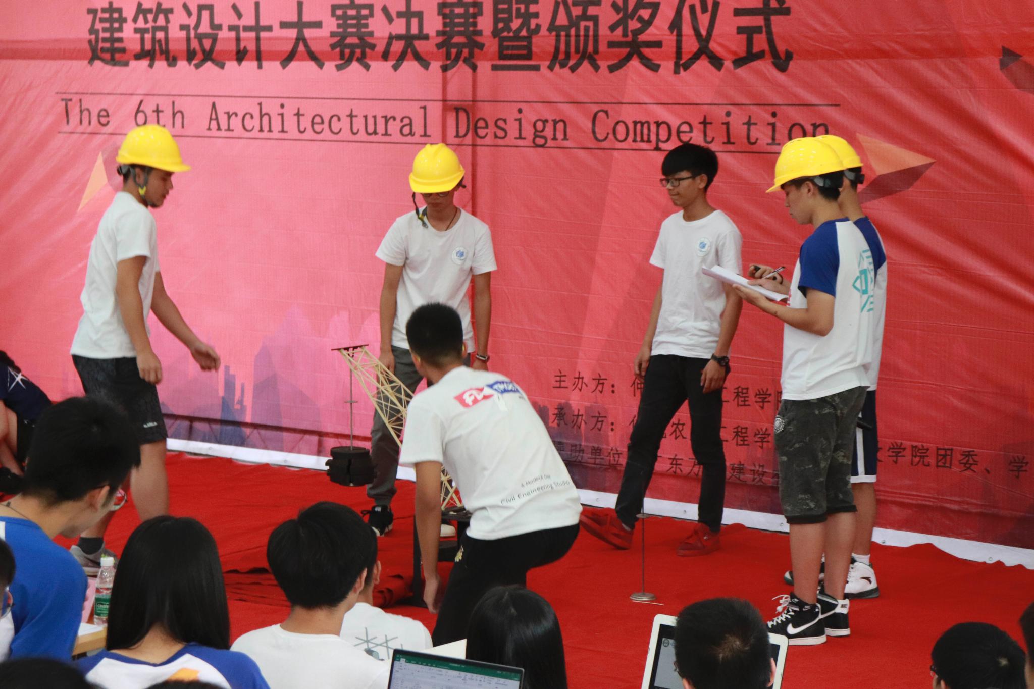 活动伊始,经过初赛遴选、晋级力学架构竞赛决赛的15支队伍开始同台竞技,参加队伍除了来自该学院,更有来自广州城建职业学院、华南农业大学、广东工业大学、佛山科学技术学院等高校的队伍。随后,进入建筑设计大赛决赛的6个学科竞赛小组依次上台,他们利用多媒体和精美高清图纸,向大家展示了本次赛事主题为“休闲会所”的建筑设计作品,并讲解了各自作品的设计理念和创意。