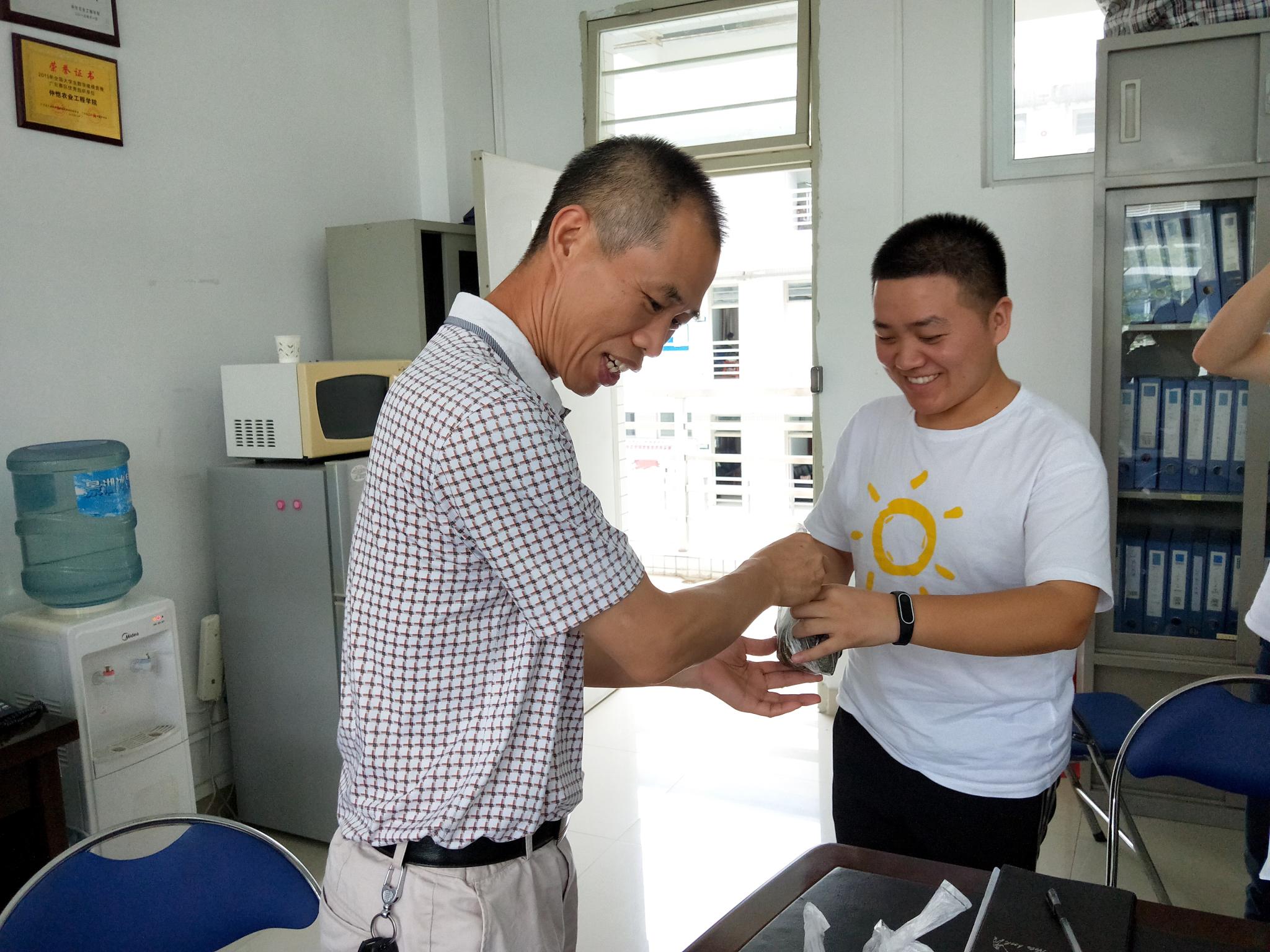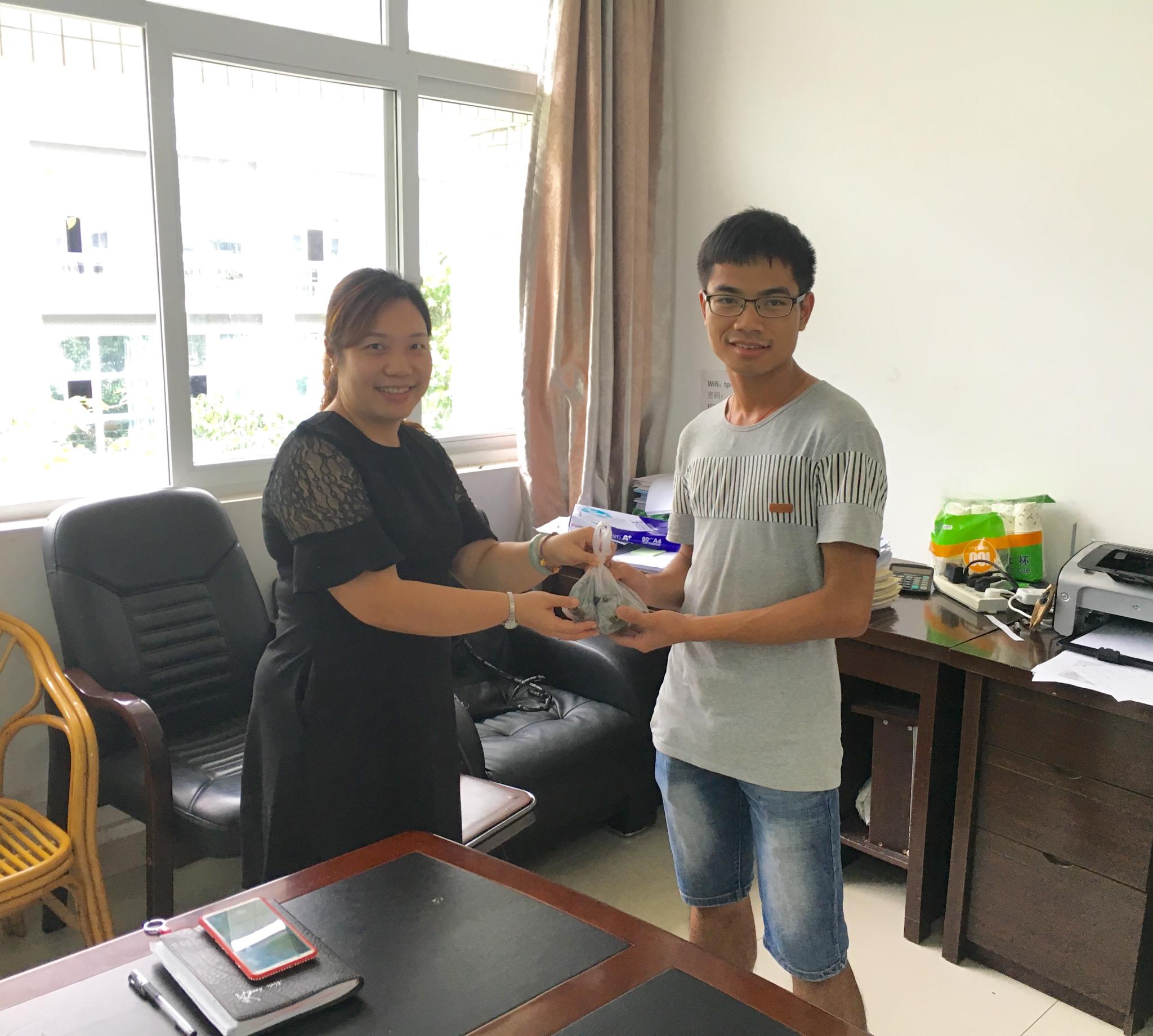 最后,伴随着热烈的掌声,香喷喷、热乎乎的粽子正式“登场”,粽叶的香气溢满了整个会议室,在场活动的气氛也随之高涨。在场的几位老师代表学院为学生代表送上粽子,同学们在拿到粽子之后纷纷表示感恩与珍惜。此次活动的开展进一步拉近了计科学子和老师的关系,展现出浓浓的师生情。