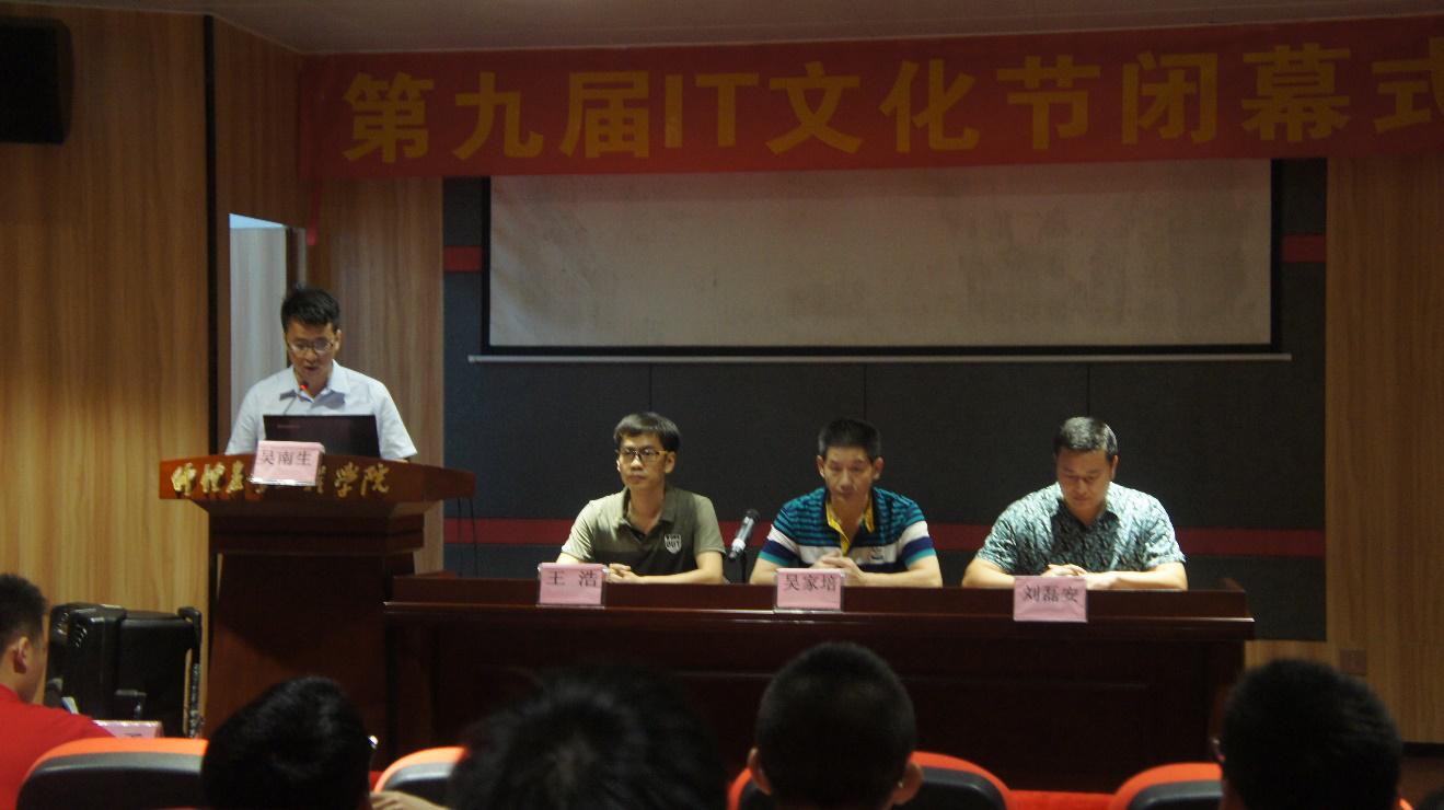 闭幕式回顾了九年以来的辉煌成果,并通过视频剪辑向师生诠释了当前IT行业的生机与活力。接着,获奖代表叶超上台发言,他对比赛中老师和同学们的帮助表达了感谢,并鼓励大家认真学习,勤于实践,积极参加到IT文化节中来,争取成为能适应市场需求和社会需要的合格人才。