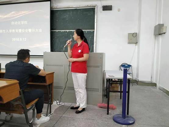党总支书记李金霞对2018级新生寄予了学习上的期待。她介绍了这几年的挂科情况及影响,并对新生们提出建议:要把精力放在学习上。她指出了近年来自动化学院学子挂科的主要原因是兼职,频繁的社团活动,没有制定好大学目标,想学学不好等原因。尤其是要注意安全问题。她建议新生们最好结伴而行,在没有熟悉校园周边环境前不要离开校园太远,要提高防盗防骗意识。出门锁好门窗,小心落入刷单等兼职陷阱。