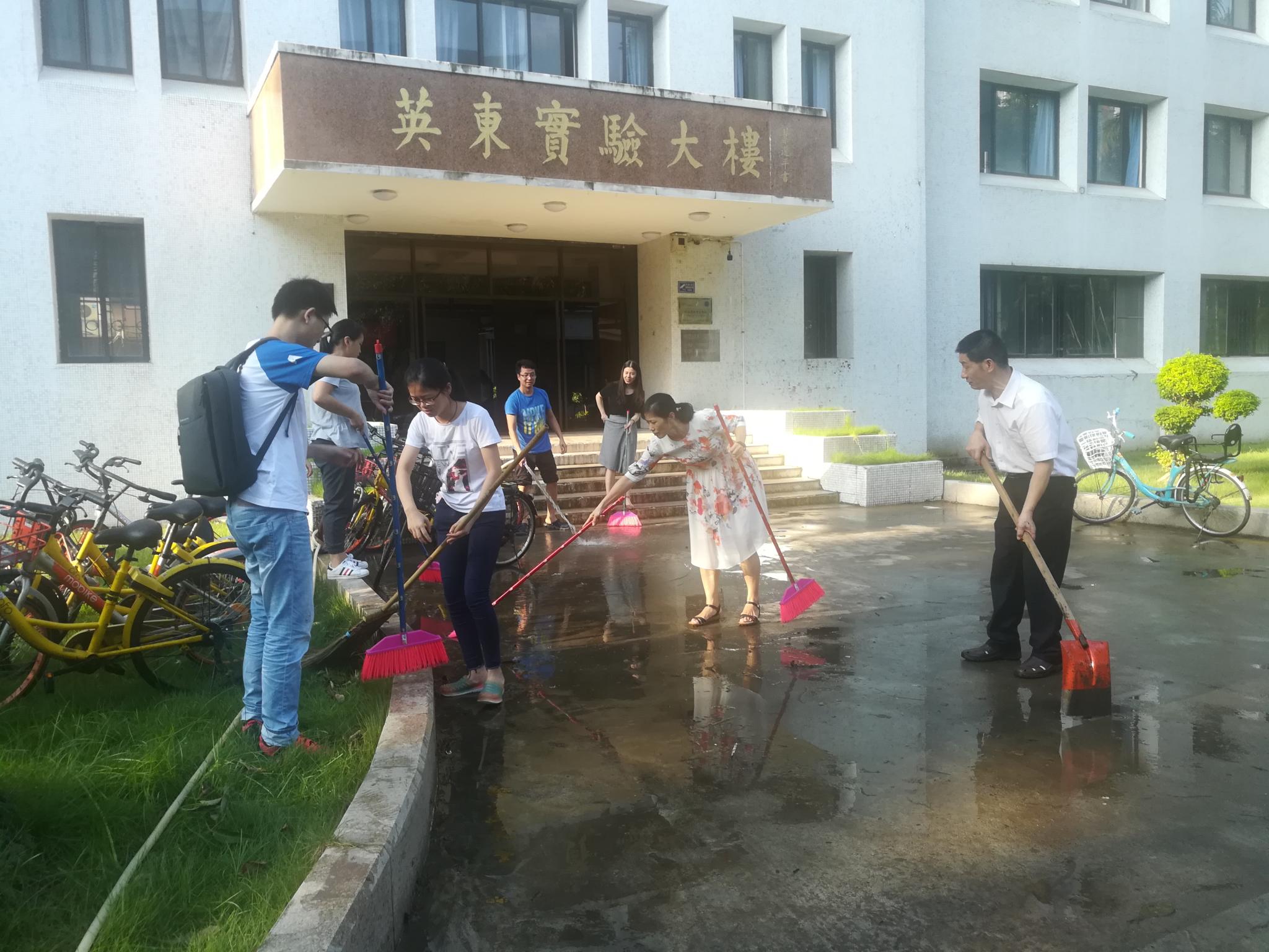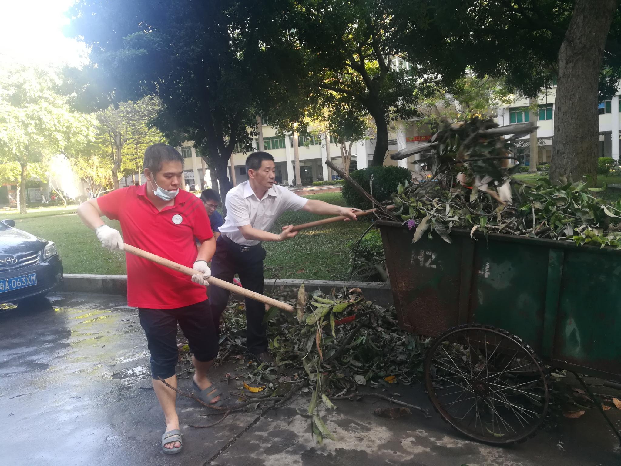 9月18日下午,强台风“山竹”过后,信息科学与技术学院积极响应学校号召,在党总支书记吴家培、院长刘双印的带领下,开展灾后校园清理工作,教职工党员、学生党员、积极分子、学生志愿者积极参与该院包干校园区域清洁中。