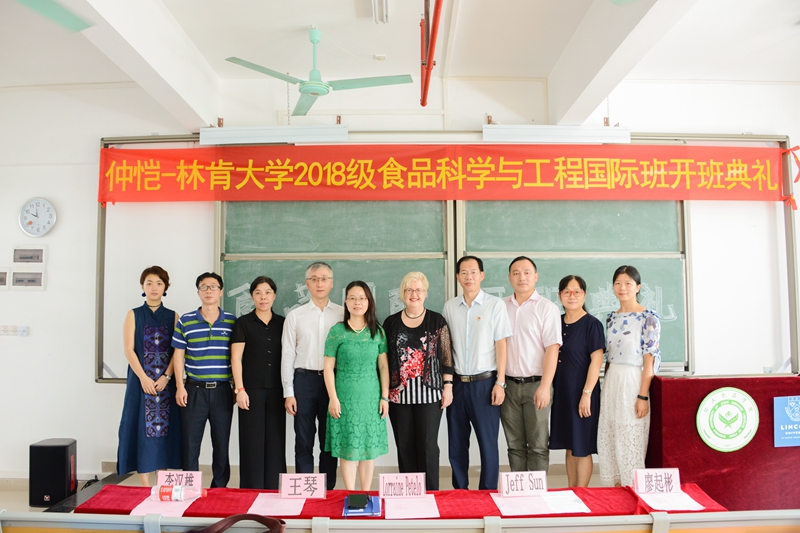 9月18日上午, 轻工食品学院2018级食品科学与工程国际班开班典礼在白云校区D栋教学楼403室顺利举行。出席开班典礼的嘉宾有新西兰林肯大学学术委员会主席Lorraine Petelo教授,林肯大学国际部大中华区事务主管孙继东先生;该院相关领导、国际班班主任、辅导员以及2018级食品科学与工程国际班全体同学参加典礼。典礼由该院院长王琴主持。