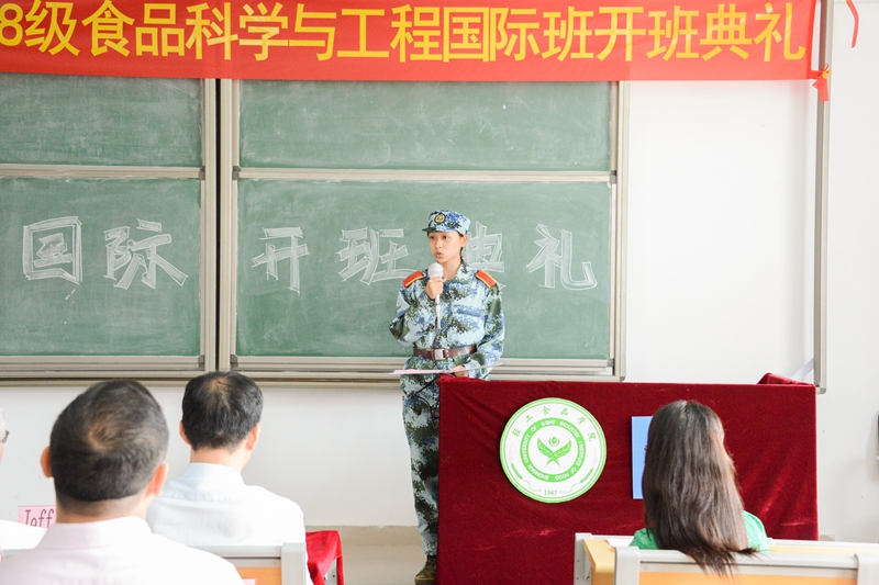 2018级食品国际班班主任刘袆帆老师也作了发言。她希望同学们尽快适应大学生活,尊敬师长,珍惜国际班这个平台,努力锤炼本领,积极争取到林肯大学学习交流。