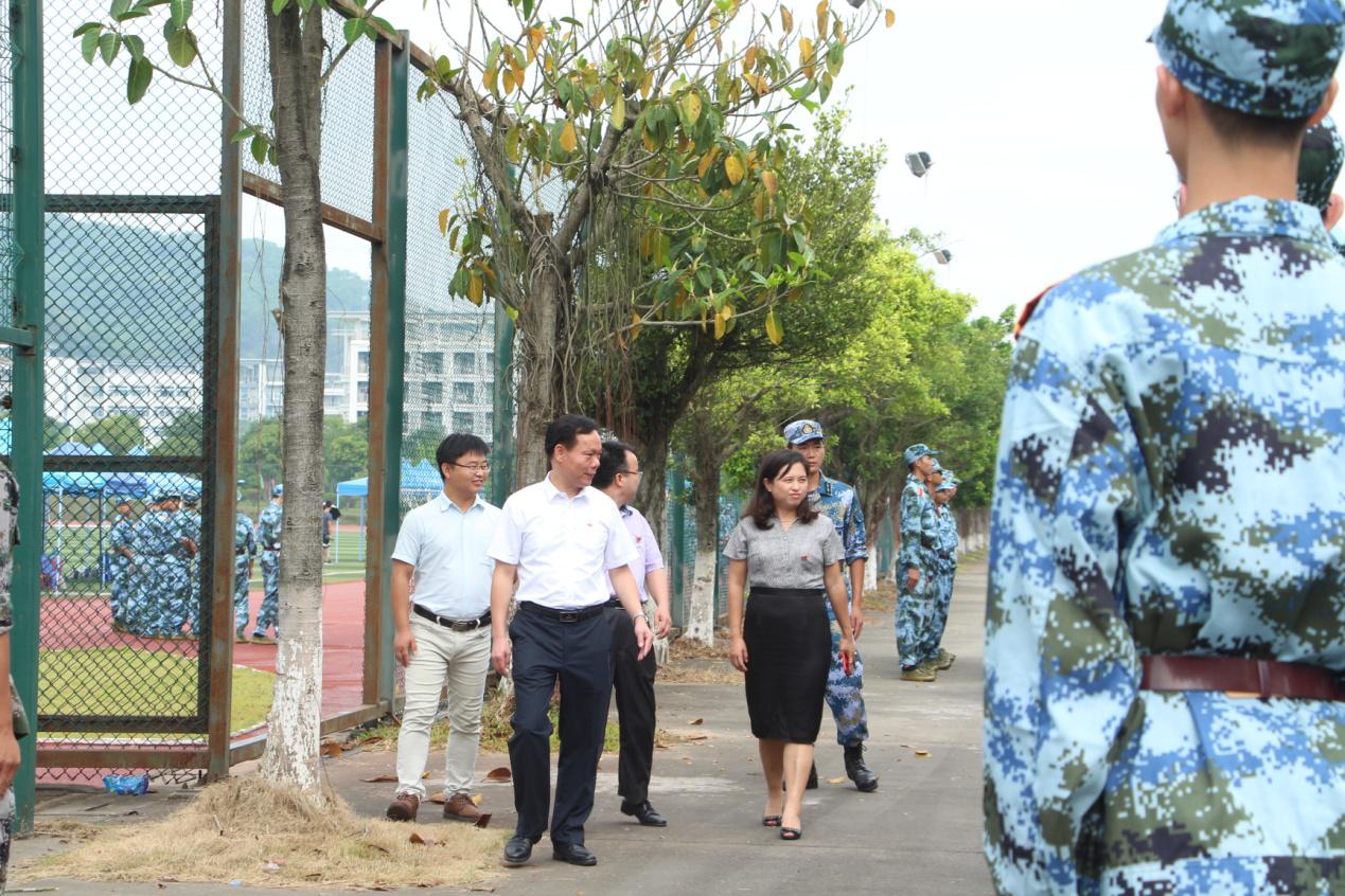 9月20日上午,机电工程学院党总支副书记、院长丁力行、党总支副书记何宝国、副院长陈姝、辅导员老师一行前往军训场地看学院军训师生。