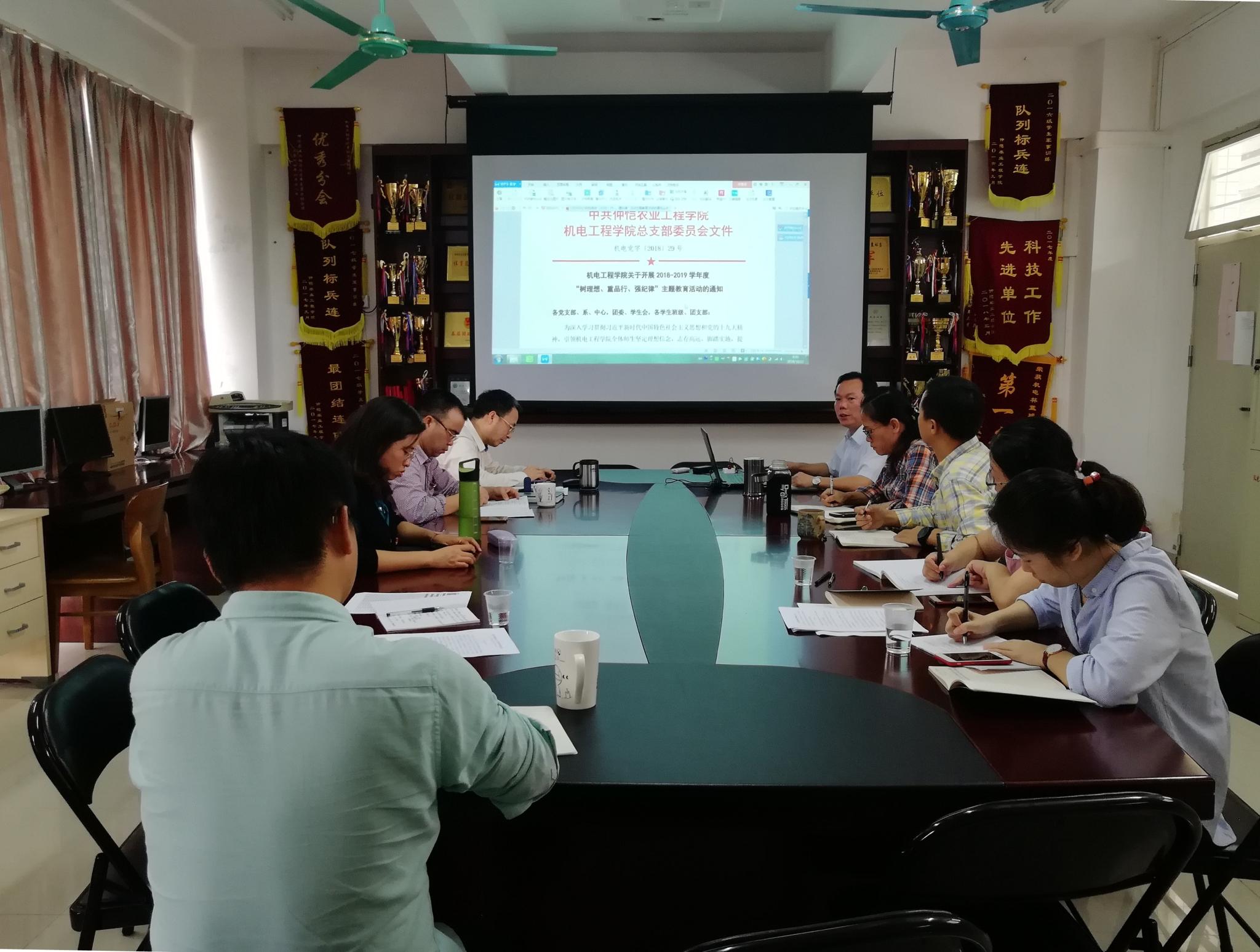 为深入学习贯彻习近平新时代中国特色社会主义思想和党的十九大精神,引领广大师生坚定理想信念,志存高远,脚踏实地,机电工程学院启动了2018-2019学年“树理想、重品行、强纪律”主题教育活动。10月22日上午,该院在白云校区刘宇新楼202室举行了主题教育活动启动会。学院领导班子、党支部书记、办公室及党务工作中心相关负责同志、学生代表参加了会议。会议由该院党总支书记张平湖主持。