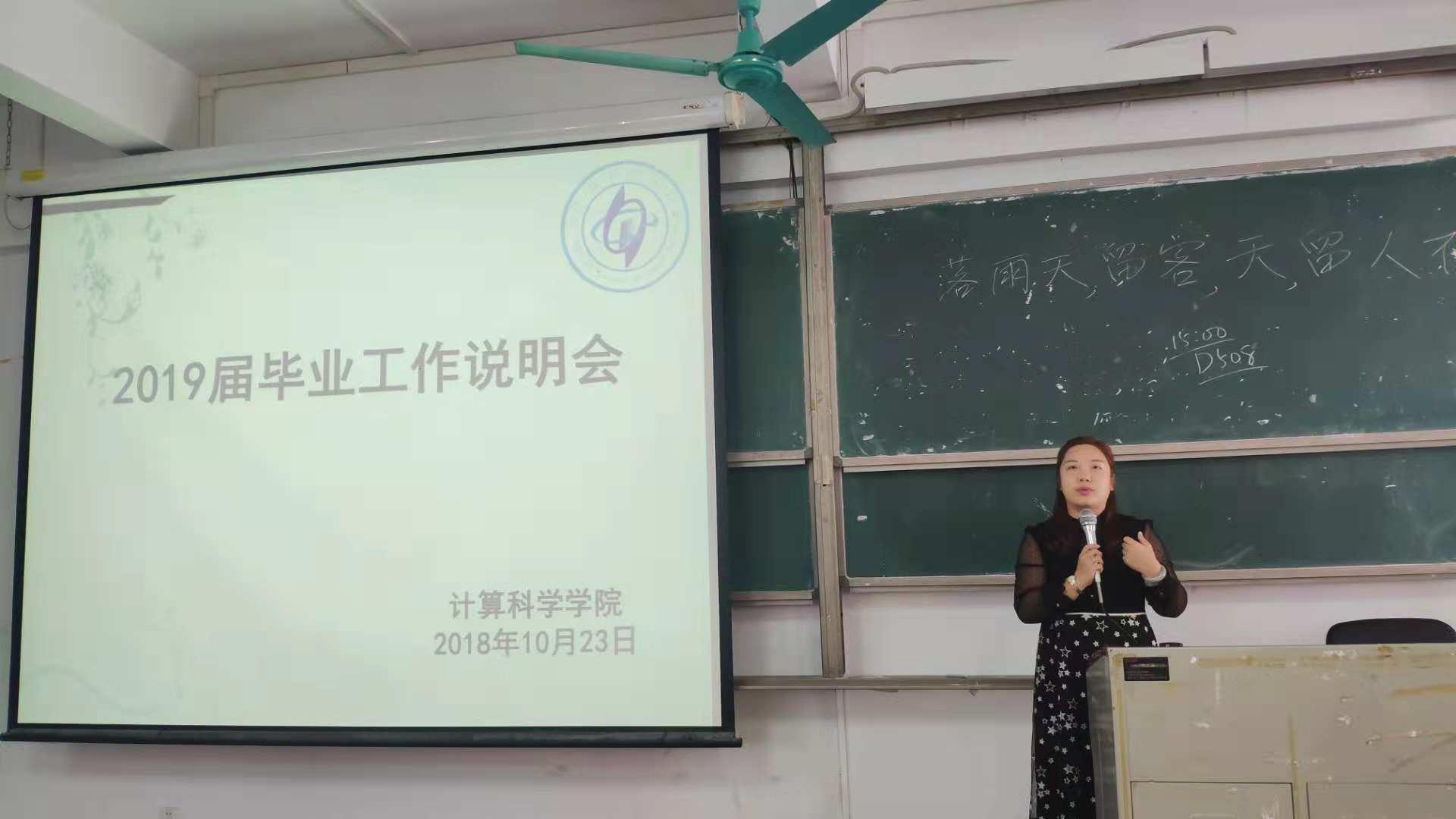 10月23日下午,计算科学学院组织全体应届毕业生就近期的毕业生相关工作召开了说明会,主要讲解关于考研、考公、选调生、毕业实习、毕业论文撰写以及毕业生档案存放等相关事宜。出席本次会议的有计算科学学院党支副书记郭肖明,辅导员张素雅,2019届全体毕业生参加。
