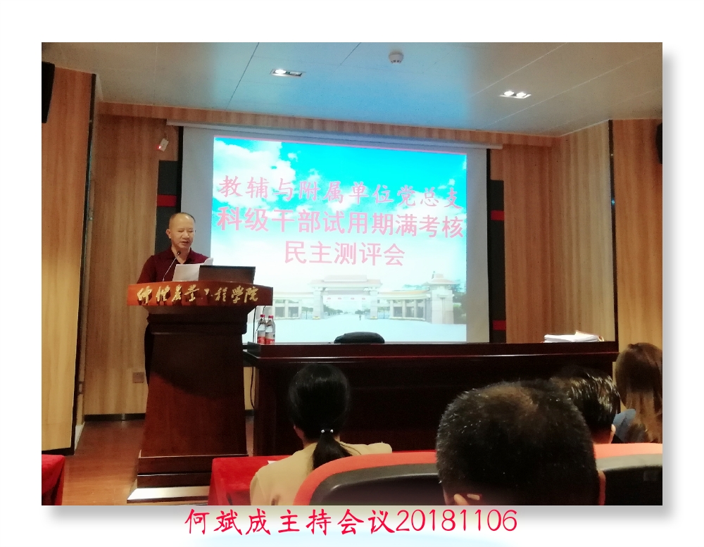 根据仲党字[2018]102号文精神,教辅与附属单位党总支于11月6日下午组织了所属部门科级干部试用期满述职测评会。测评会由党总支副书记何斌成主持。参加本次考核测评的八位科级干部分别来自教辅与附属单位7 个部门,他们分别进行了个人述职,向全体干部职工汇报了本人在试用期间德、能、勤、绩、廉五个方面的情况,展现了他们的德才和工作实绩,体现了教辅与附属单位年轻干部的良好精神风貌。职工代表对考核对象进行了民主测评。