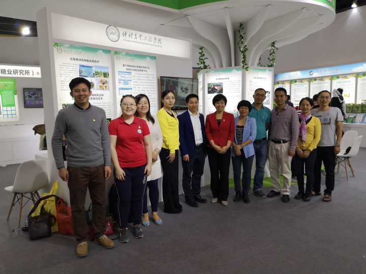 在参观广东各地市展区时,我院陈晓玲书记一行专程来到湛江徐闻展馆,看望了我院选派到徐闻县挂职现任科技副县长的刘义存老师,刘义存简要汇报了在徐闻挂职科技副县长的工作情况。陈书记就目前学院与徐闻县签订相关合作协议的推进落实情况,以及未来的计划与徐闻农业局相关负责人进行交流。
