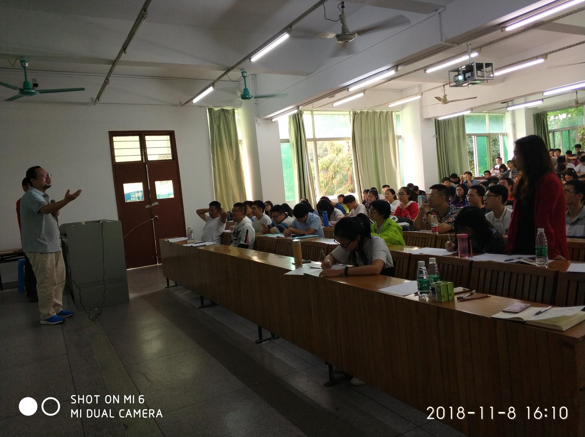 11月8日下午,由研究生处主办的第17期导师论坛在海珠校区教学楼B301室举行,仲恺农业工程学院动物与科技学院林蠡教授主讲,仲恺农业工程学院研究生处副处长肖文清主持,200余名研究生及教师到场聆听报告。