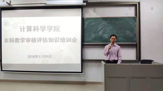 培训前,党总支书记刘伟坚首先勉励同学们要爱校荣校,学校的未来也是学生的未来。对全体学生提出以下要求:一是思想上要高度重视,把此次本科评估作为学校擦亮品牌,展示师生风采的好机会;二是行动上要体现出积极支持配合的态度,增强行动力,展现计科学子饱满的精神面貌;三是以此契机更要端正学习态度,课堂上要集中注意力,主动思考,并有所收获。