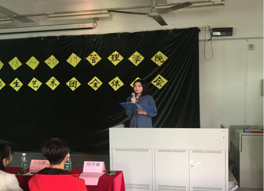 12月2日下午,管理学院学生艺术团在教学楼B501室正式召开2018-2019学年度第一次全体例会。管理学院党总支书记柯锦泉,校团委指导老师谢君,管理学院学生艺术团指导老师、2018级辅导员黄婕,自动化学院、信息科学与技术学院、管理学院各学生组织代表以及管理学院学生艺术团全体成员参加本次会议。本次例会由管理学院学生艺术团成员杨萱莹、李铭源主持。