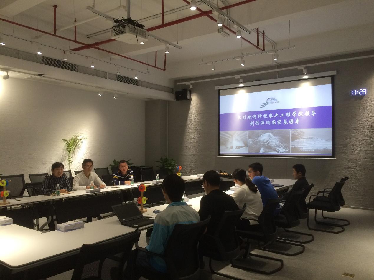 12月7-8日,农业与生物学院副院长(主持工作)郑奕雄、副院长周玲艳等一行到深圳华大基因研究院、中国农业科学院深圳农业基因组研究所开展农业基因组领域洽谈合作活动,分别受到到访单位张二春执行副院长、饶敏杰副所长等领导的热烈欢迎。