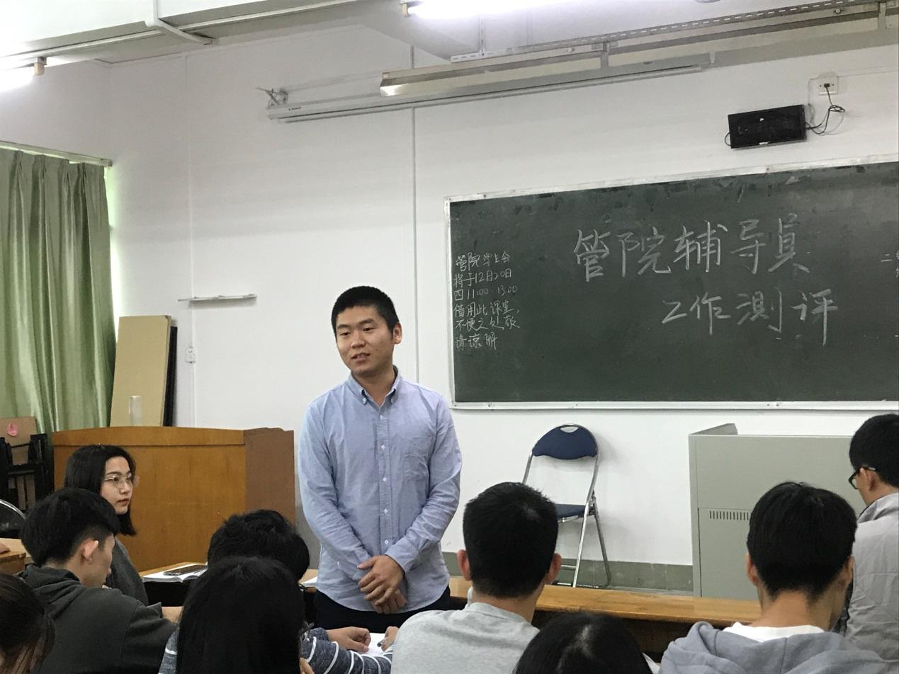 12月20日中午,管理学院辅导员工作测评会议在教学楼208室召开。管理学院辅导员张现超、黄婕以及学生干部代表参加本次测评会议。人文学院辅导员赵国英担任此次辅导员工作测评会议的监督员。