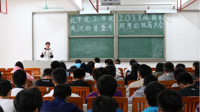 12月27日上午,化学化工学院2018级期末考试暨考风考纪教育动员大会于综合教学楼612课室举行。出席本次大会的嘉宾有:化学化工学院辅导员潘耀宗老师及2018级新生助班。