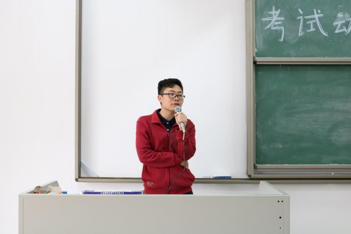大会由潘老师主持召开,潘老师首先介绍本次大会的目的在于优秀师兄师姐的考试经验分享和强调考风考纪的重要性。他提出三点,一是同学们要从思想上高度重视期末考试,认真复习,争取取得好成绩;二是同学们要以诚信为本,考试过程中不能出现作弊行为,一旦发现,严肃处理,绝不姑息;三是同学们要调整好自己的心态,汲取优秀师兄师姐的备考经验并结合自身情况,做好期末考试的充分准备。